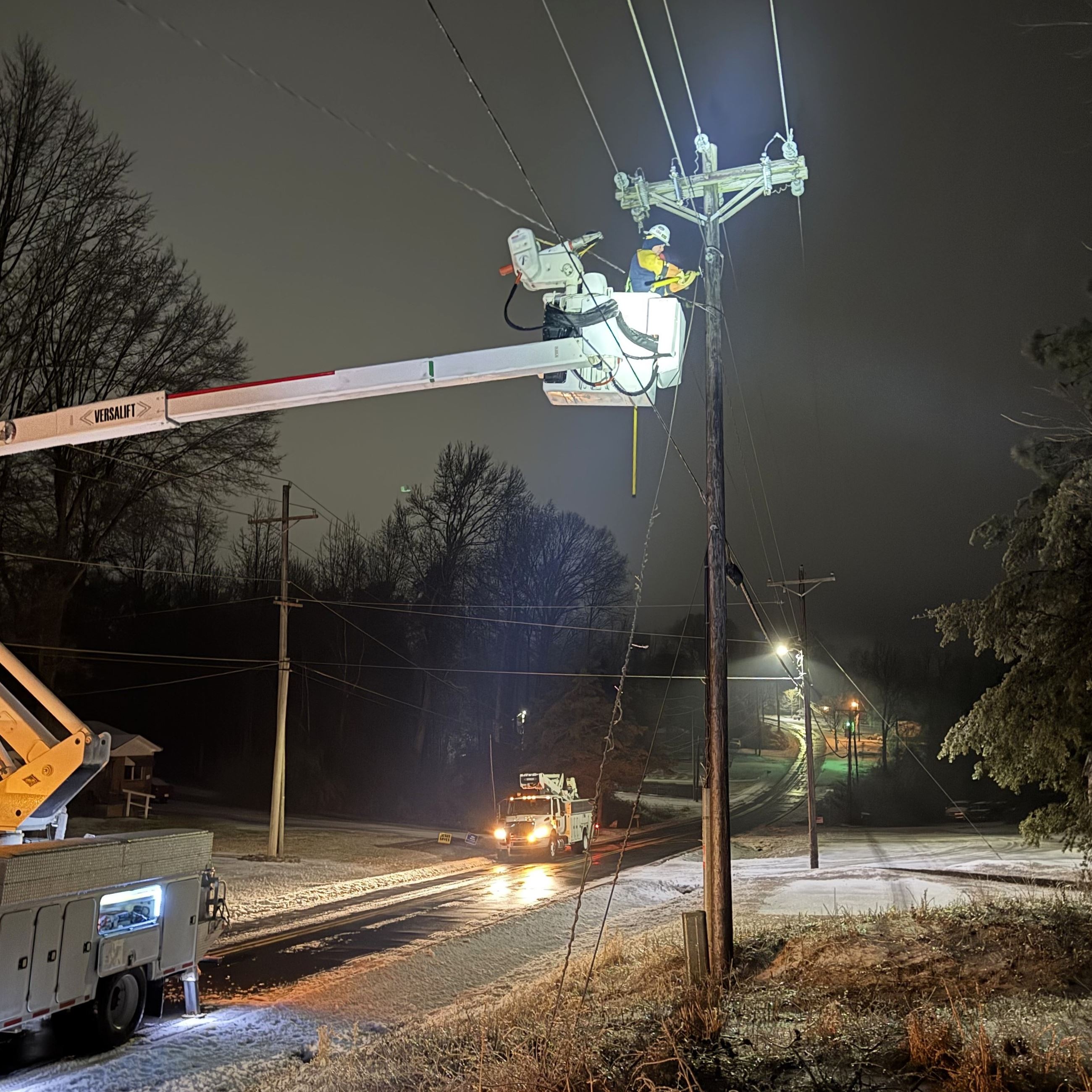 They assisted with downed trees over three-phase lines that were burning. The predicted ice accumulation in the area was less than forecasted, so damage was minimal.